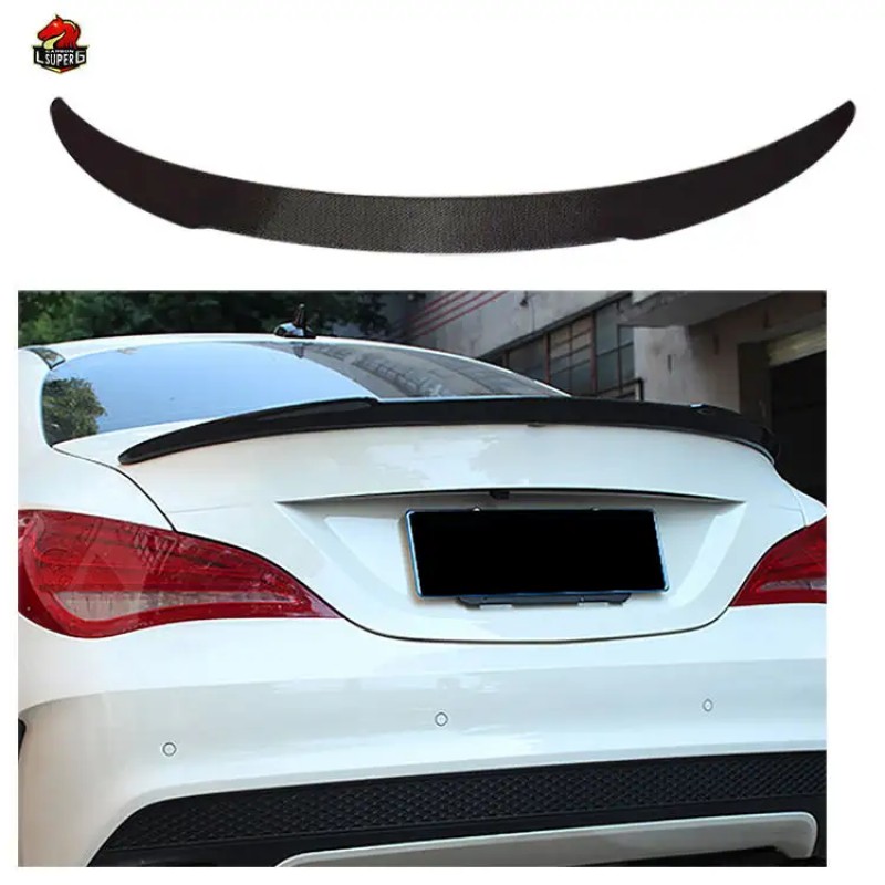 Спойлер Mercedes-Benz CLA-klasse: углеродное волокно, черный, задний обвесЭтот красиво выполненный спойлер из углеродного волокна предназначен специально для автомобилей Mercedes-Benz CLA-klasse. Он не только придает вашему автомобилю стильный и спортивный вид, но и улучшает аэродинамику, что положительно сказывается на управлении и производительности.Преимущества:- Изготовлен из высококачественного углеродного волокна, что обеспечивает легкость и прочность.- Черный цвет спойлера прекрасно сочетается с любым цветом автомобиля.- Задний обвес добавляет дополнительный стиль и агрессивность к общему внешнему виду автомобиля.- Легкий монтаж без необходимости дополнительной обработки кузова.Этот спойлер является отличным выбором для тюнинга вашего Mercedes-Benz CLA-klasse, делая его еще более привлекательным и индивидуальным.