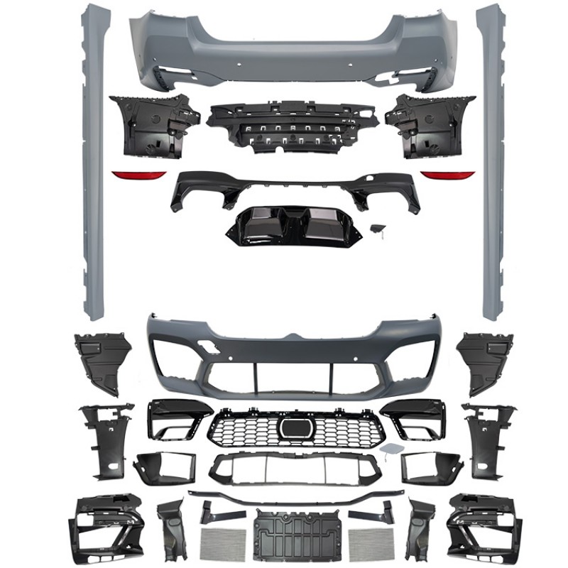 Комплект кузова M5 для BMW 5 серии G30 G38 LCI - стиль и элегантность в черном пластикеЭтот комплект кузова M5 для BMW 5 серии G30 G38 LCI добавит вашему автомобилю роскоши и агрессивности. Изготовлен из высококачественного черного пластика, он придает вашему авто уникальный и элегантный вид.Преимущества:- В комплекте юбка, спойлер, обвес, которые дополняют общий стиль автомобиля- Идеально подходит для BMW 5-й серии, M5- Прочный материал обеспечивает долговечность и защиту кузова от царапин и повреждений- Черный цвет придает автомобилю элегантность и агрессивностьНе упустите шанс усовершенствовать свой BMW 5 серии G30 G38 LCI с этим стильным комплектом кузова M5!
