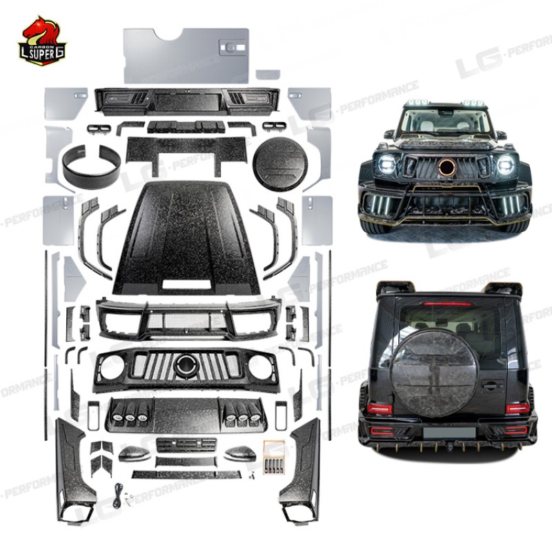 Этот обвес создан специально для автомобиля Mercedes-Benz G-klasse, чтобы придать ему элегантный и агрессивный вид. Изготовлен из сухого углеродного волокна высочайшего качества, обеспечивающего прочность и легкость. Черный глянцевый цвет добавляет автомобилю роскоши и утонченности.
